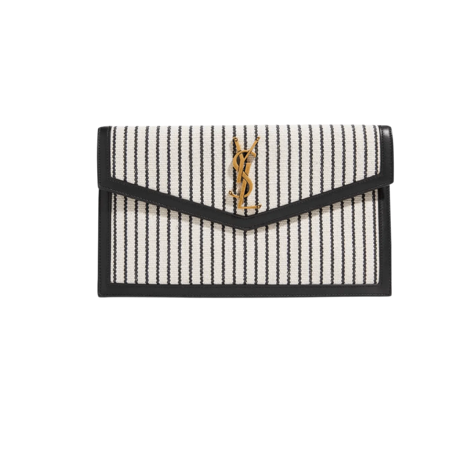 POCHETTE MEDIA UPTOWN IN PELLE MORBIDA E TELA NATURAL BEIGE LOGO GOLD